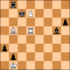 De pionnen op a3, b2 en d7 stonden er al een tijdje. Het zou gewonnen moeten zijn voor zwart, maar zijn pogingen dat aan te tonen had ik steeds weten te pareren. Dus probeerde hij iets anders: 1…Tb6? 2.Tc5+ Kd63.Txg5 Hij begon nu lang na te denken. 3…Tb8 is de enige zet, en dan moet het nog wel remise zijn, al kan ik dan proberen toren/loper tegen toren te winnen. Hij deed echter 3…Ke7 en hoewel ik wel eens in zo’n situatie een tegenstander remise gegund heb, was ik nu keihard: 4.Te5+ 1-0. 34 uit 35 dus, een goede score.